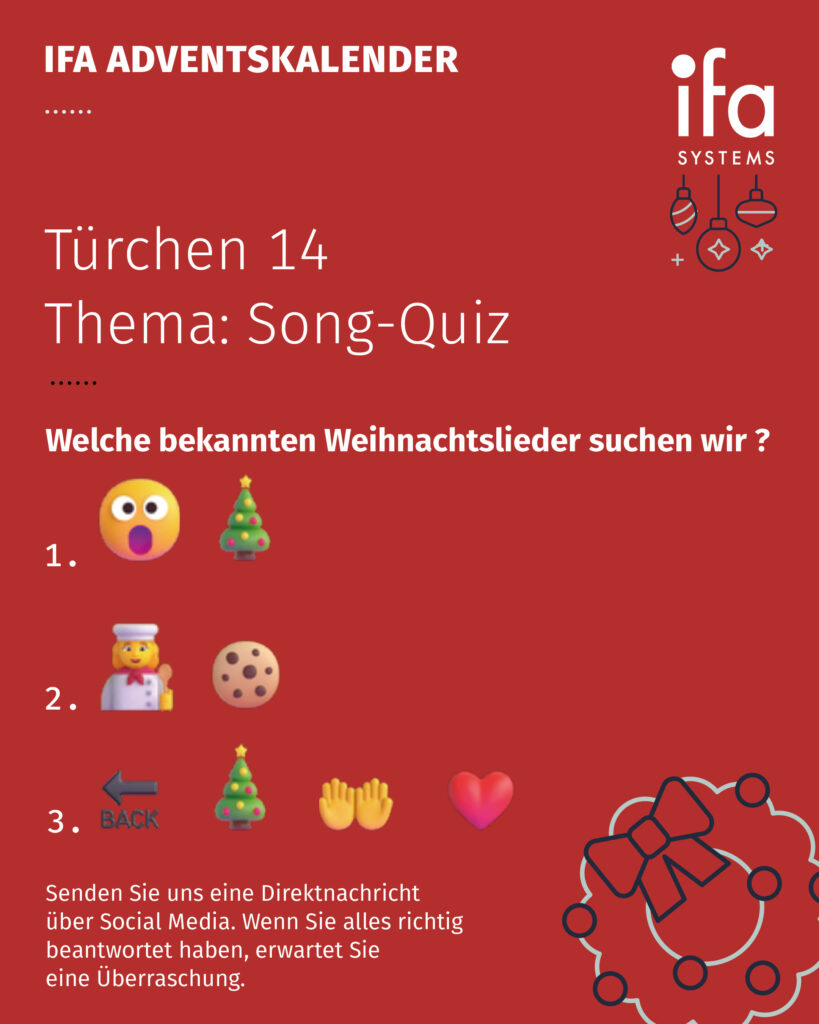 Heute heißt es: Rate mit! Wir haben bekannte Weihnachtslieder in Emojis verpackt – erkennen Sie sie alle? Ein kleiner Spaß für zwischendurch, der garantiert für gute Laune sorgt.