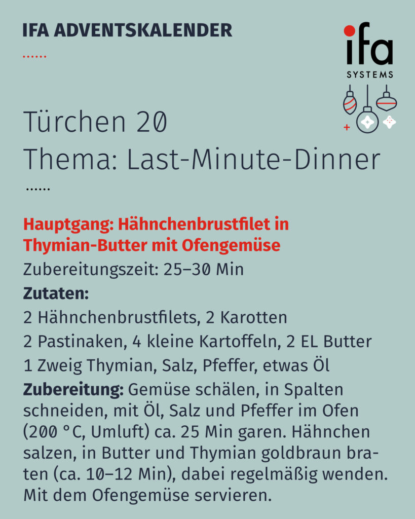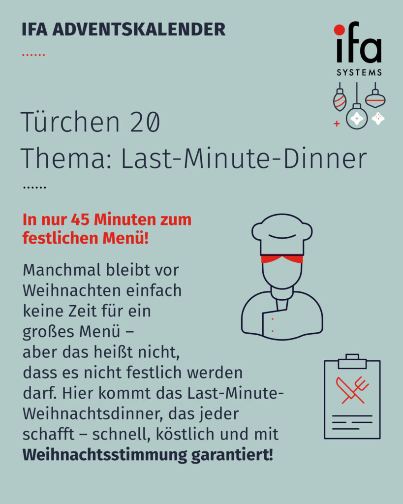 In nur 45 Minuten zaubern Sie ein festliches Menü für 4 Personen – lecker, einfach und weihnachtlich: